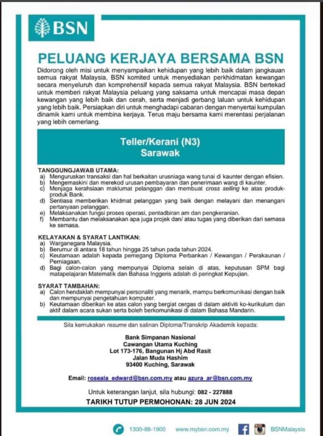 bsn teller • Kerja Kosong Kerajaan
