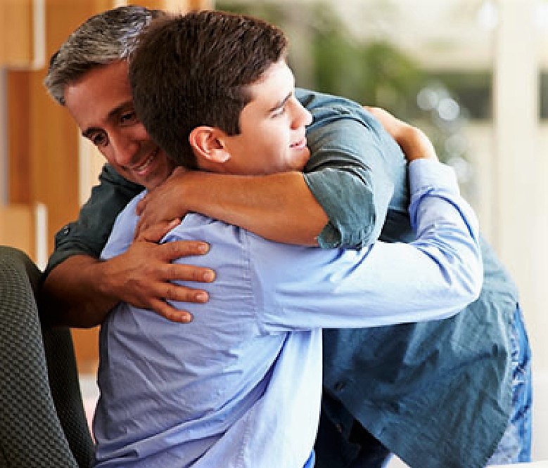 Father And Teenage Son Hugging English Unite Hansel And Gretel